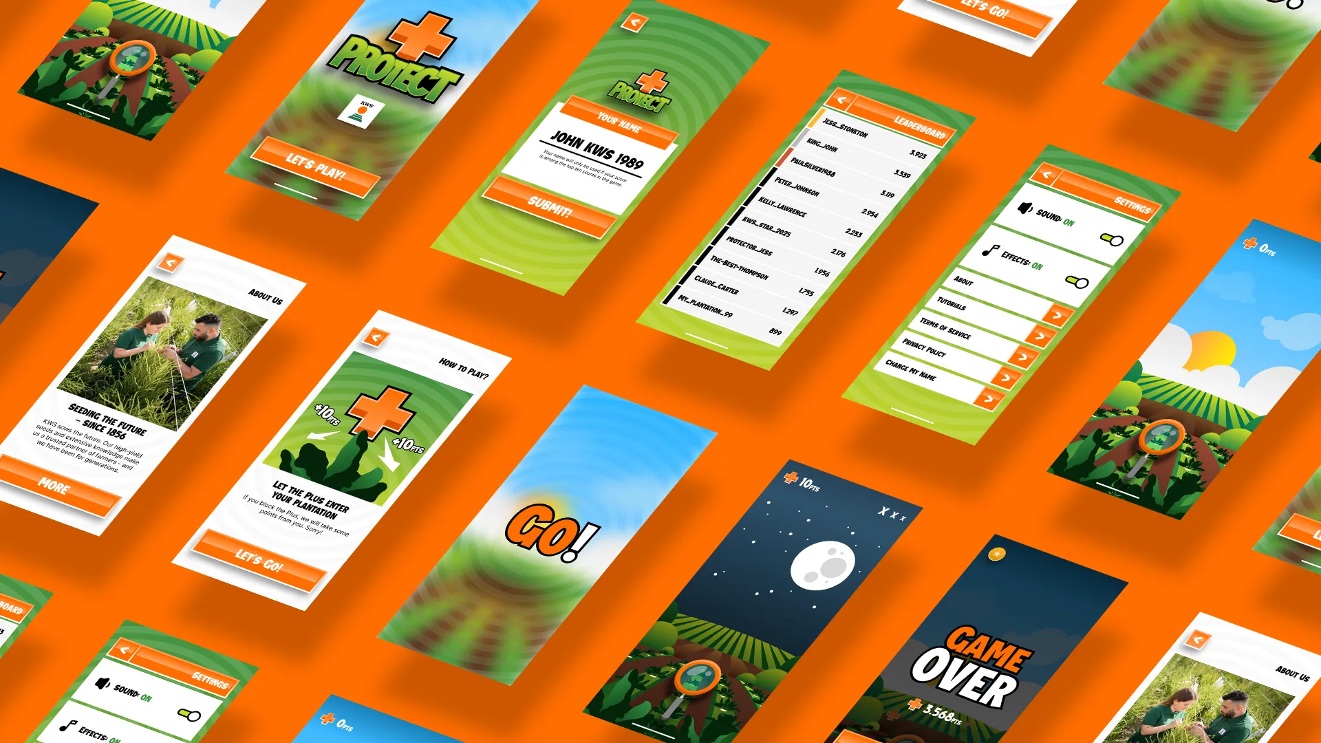 Documentação técnica e wireframes do jogo Protect Plus, desenvolvido para a campanha global da KWS.